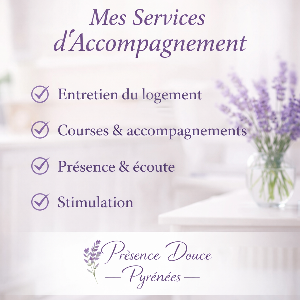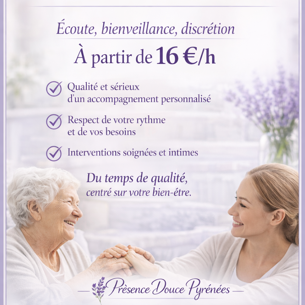 Avec Présence Douce Pyrénées, vous bénéficiez d’un accompagnement humain, doux et professionnel, adapté à chaque situation du quotidien.